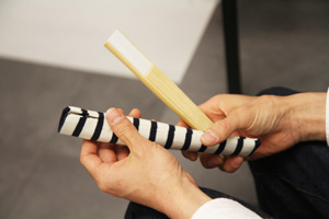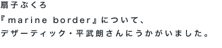 | ざっくりとしたカジュアルな「天竺ボーダー」生地に、 扇骨とおそろいの 「星・雲・ヨット・波・錨」のデザインを刺繍しています。 男女問わず、カジュアルに使用できます。 ※販売は終了しました。 |