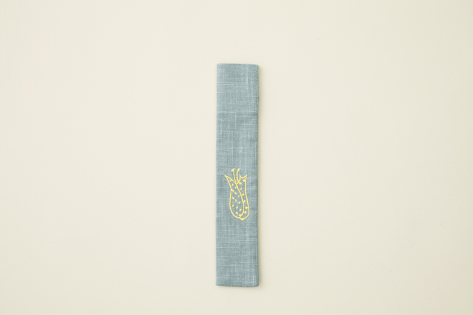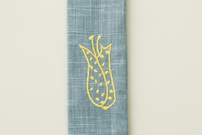 ひびのこづえさんの扇子「花が咲く」のデザインから モチーフをひとつえらび、刺繍をしました。