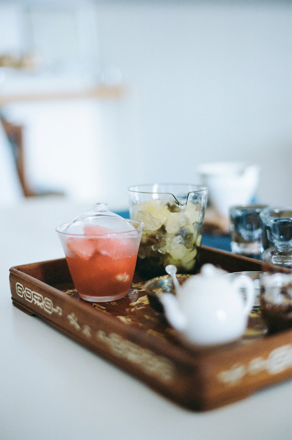 撮影当日は、貴重な茶葉と旬の果物を用意し、