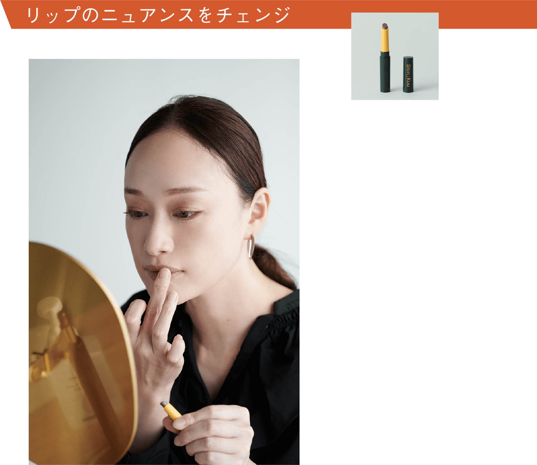 トーンを押さえ、ぐんと落ち着いた表情になります。