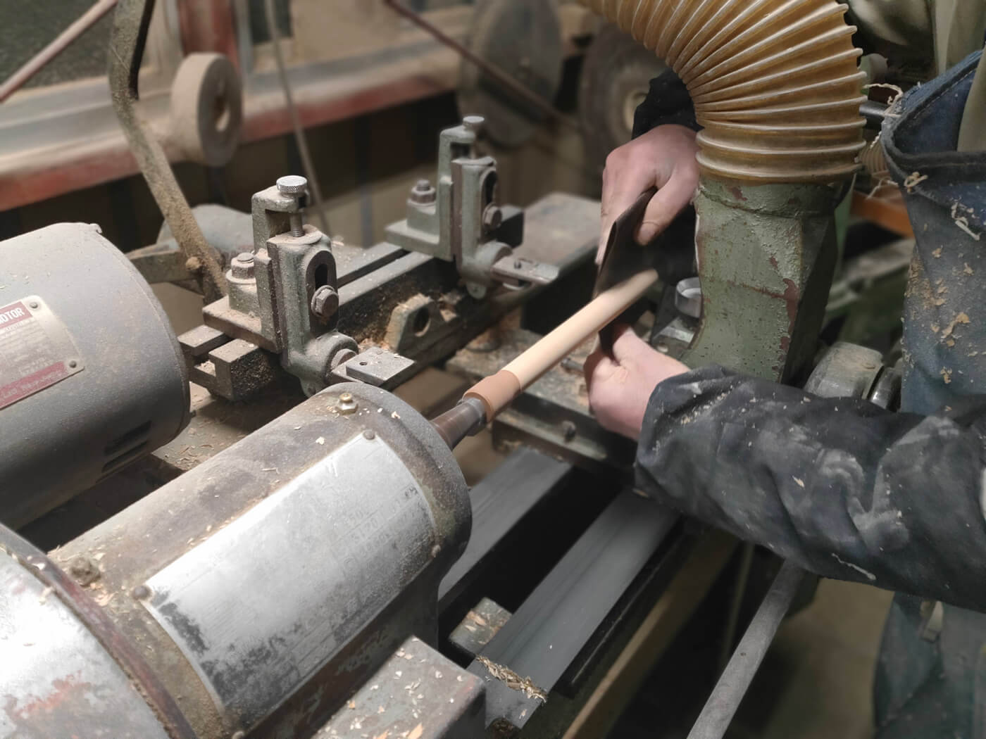 鳴沢湖畔に、ブナ材の加工を手がける工房があります。