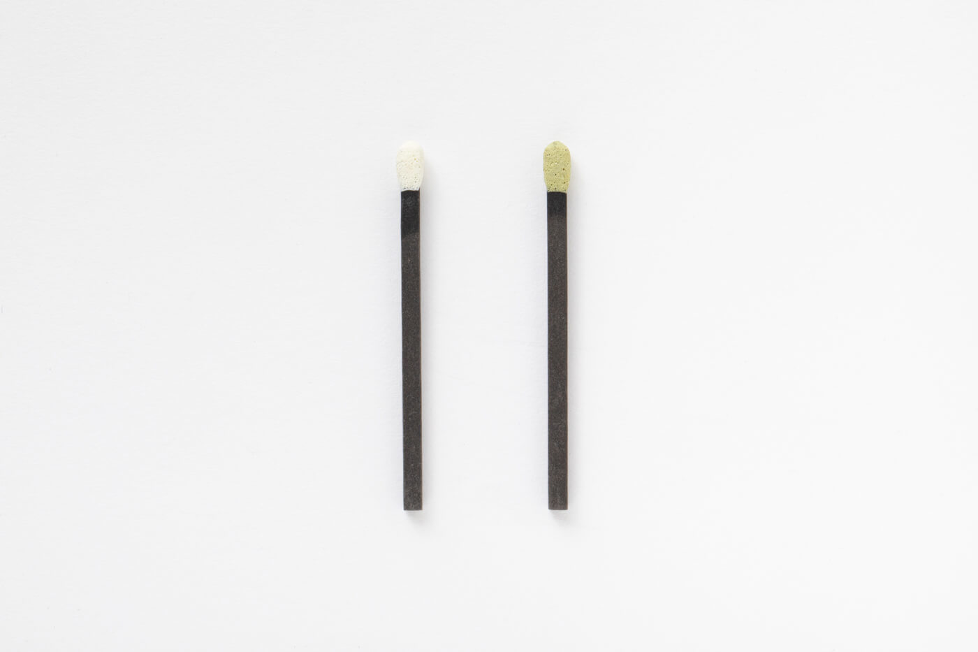 ▶お香の先端に、乳白色の着火剤をちょんちょんと付けています。