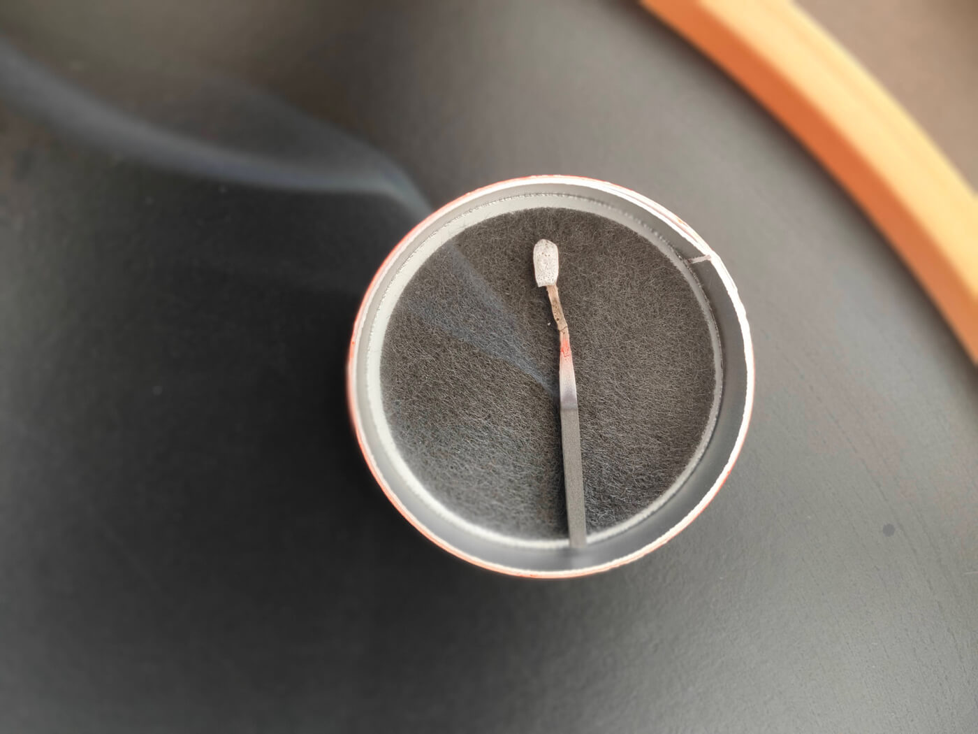 ▶線香の部分が、じんわり、ゆっくり燃えています。