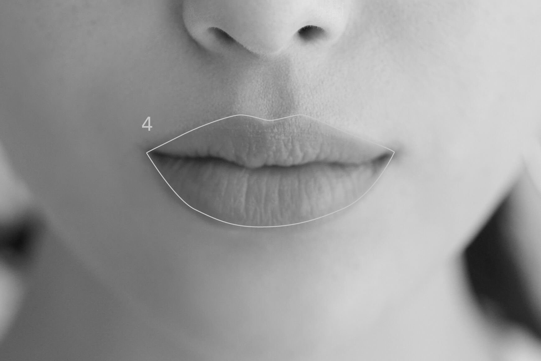 4.ライトを指に取り、唇全体になじませる。次にシンクを指に取り、同じようになじませる。