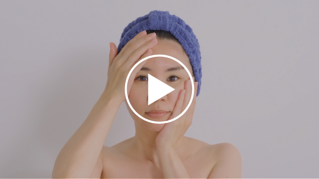 2. 手で包み込むように、やさしく顔全体になじませます。(ハンドハグ)