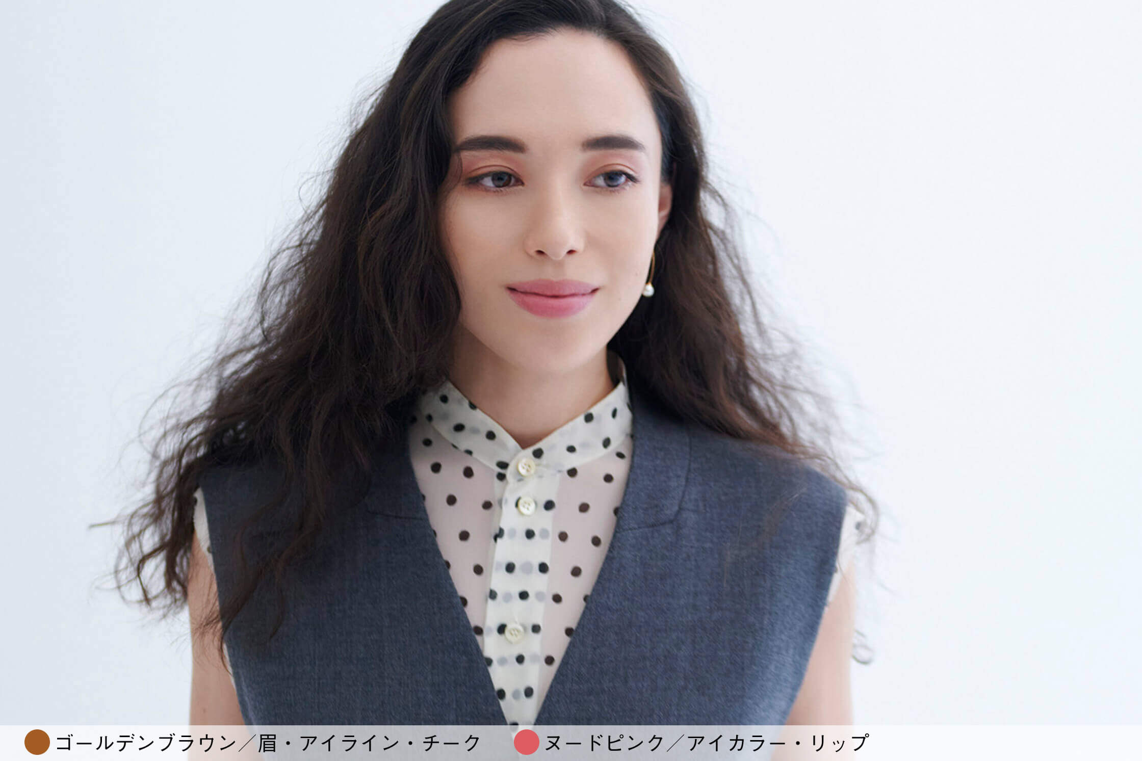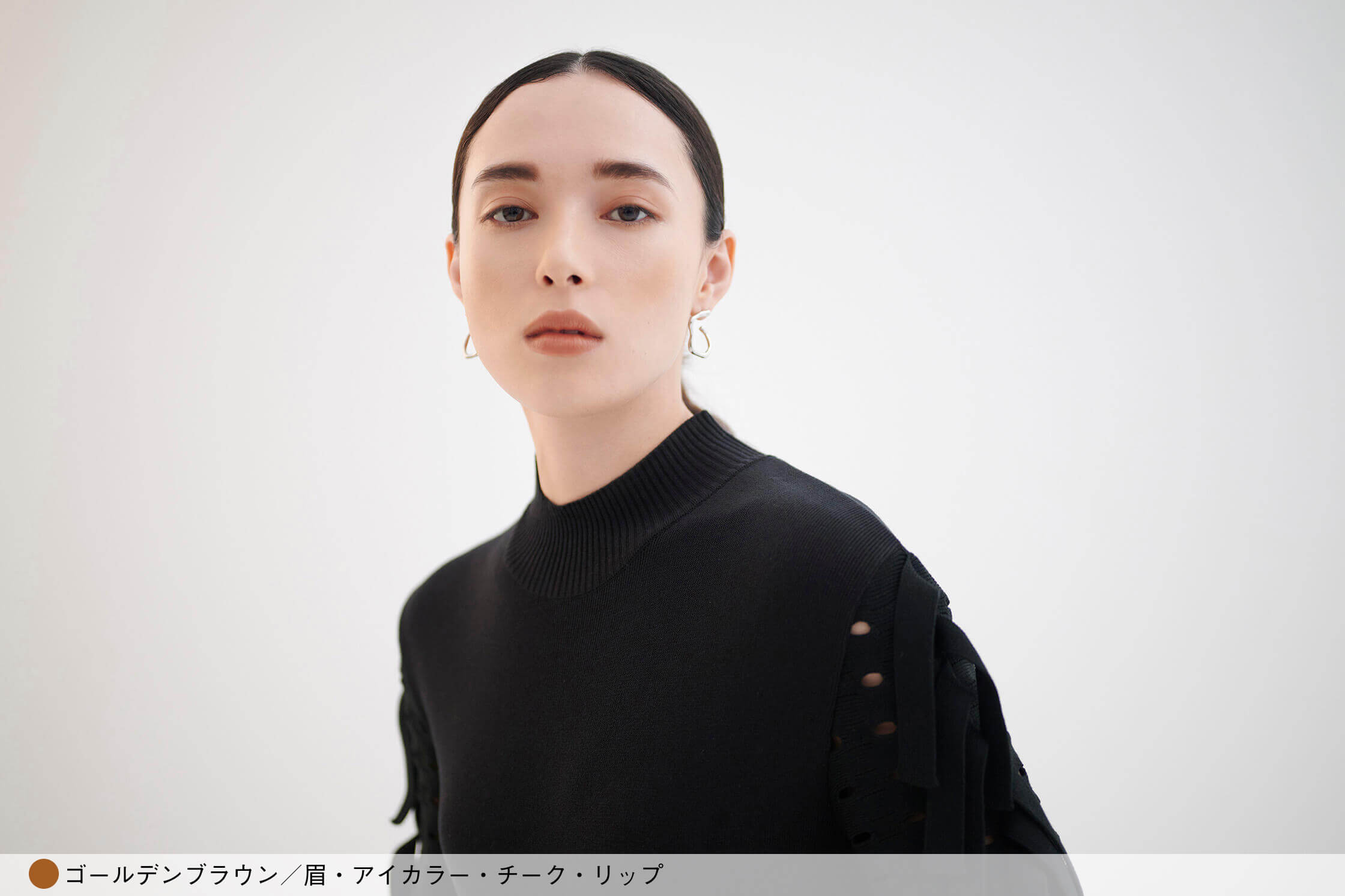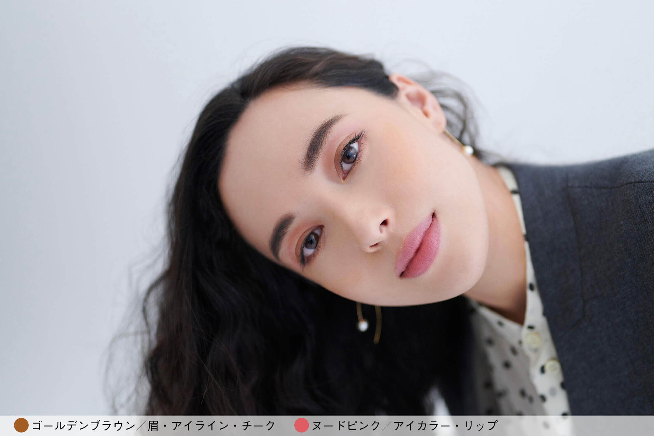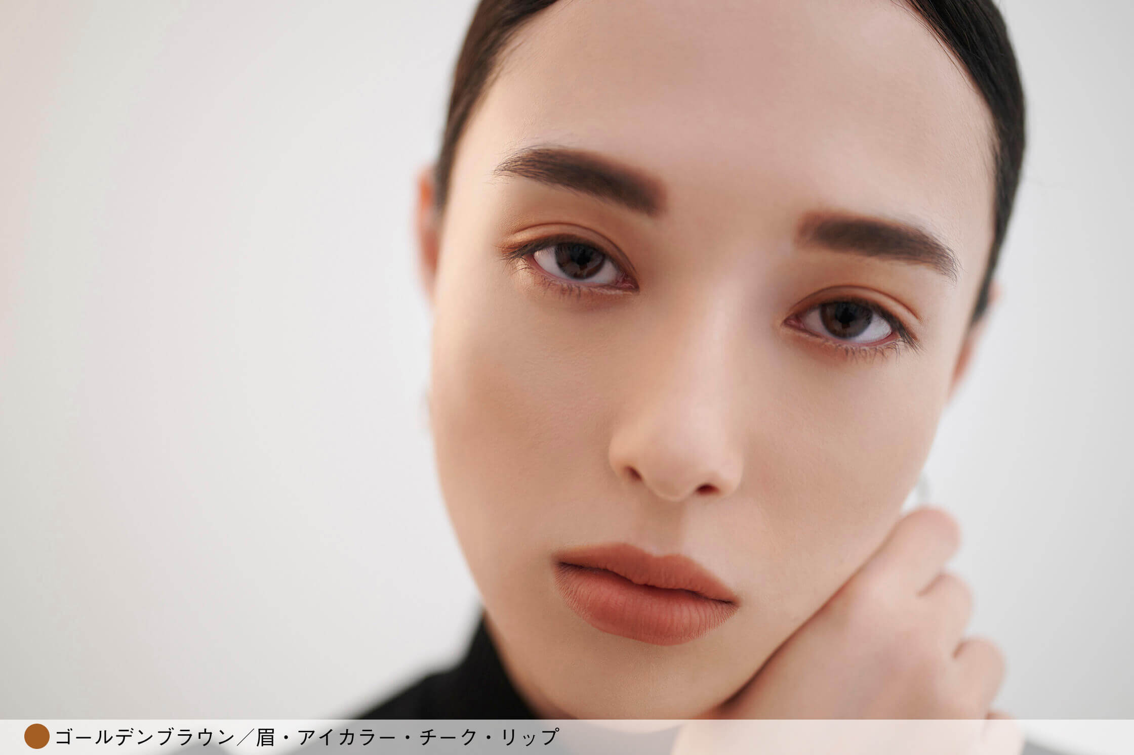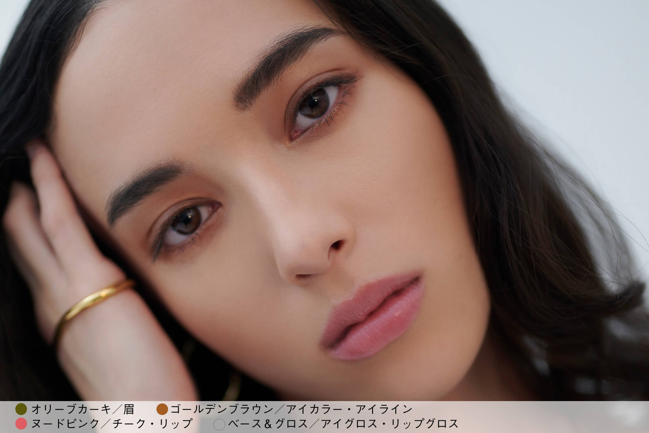 まつ毛や眉毛の影を色に転換したようなニュアンスカラー。