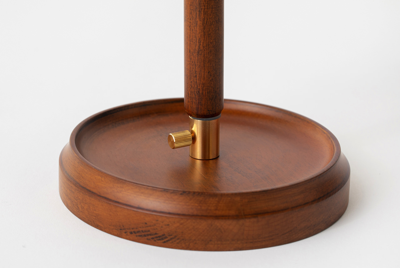 職人さんが手回しの轆轤(ろくろ)で仕上げた木の台座は、