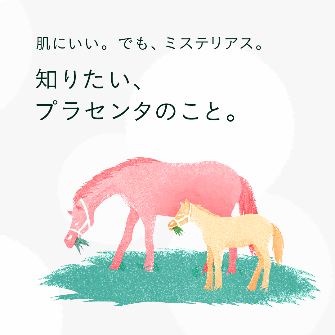 北海道・日高地方で育てられたサラブレッドの胎盤から抽出。肌にみずみずしさ・ハリを与える。