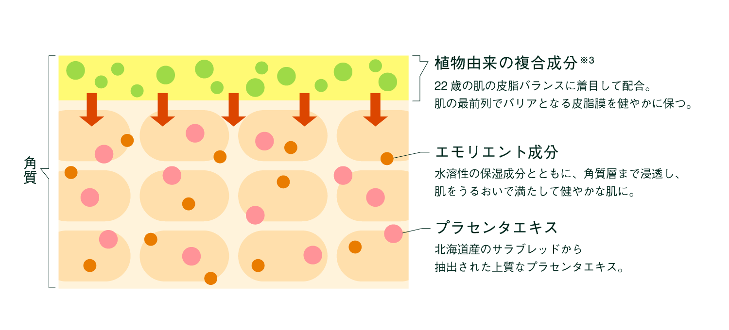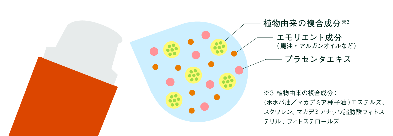 ※1 上質なうるおい成分:プラセンタエキス、エモリエント成分、植物由来の複合成分※3