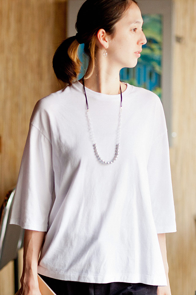 ゆったりリラックスしたシルエットの5分袖Tシャツです。