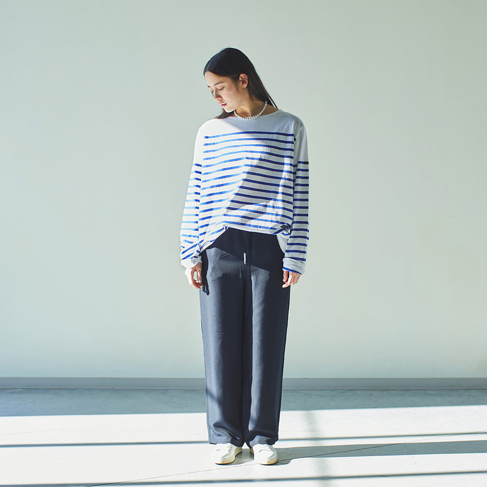 リネンのシャツにあしらったり、いつものボーダー&パンツ、