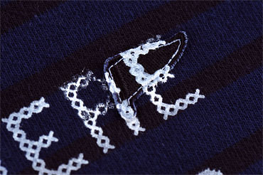 胸にクロスステッチ風にプリントされています。