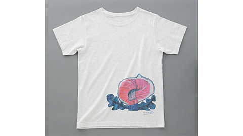 ミロコマチコさんが『忘れてきた花束。』のために描きおろしてくださったイチジクの絵を大胆にレイアウトしました。生地は、やわらかいグレーが淡くミックスされたオートミール。ほかにはない個性と大人っぽさをあわせ持つ特別なTシャツができました。