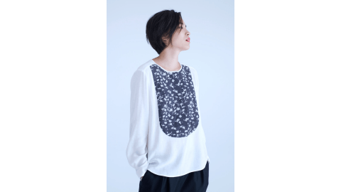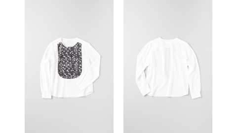 CACUMAファンのあいだではすっかりおなじみの形。ユリのワンピースと同じく初めての生地でとても着心地が良く、上質なシャツ。この秋冬は、女性らしい、ちいさな花びらをモチーフにしました。「気がるに着てもらいたいシャツです。モノクロなのでカジュアルなデニムと着てもいいし、何にでも合わせやすいと思います」(デザイナー渡邉良重)