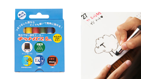 水拭きで簡単に消せる固型マーカーです。「ほぼ日ホワイトボードカレンダー」は、裏面もホワイトボード仕様になっているので、お子さんのお絵かきや、家族や職場で掲示板にしたりするときにいかがでしょう?消すときは、ティッシュや柔らかい布を水で濡らして拭き取ってください。
