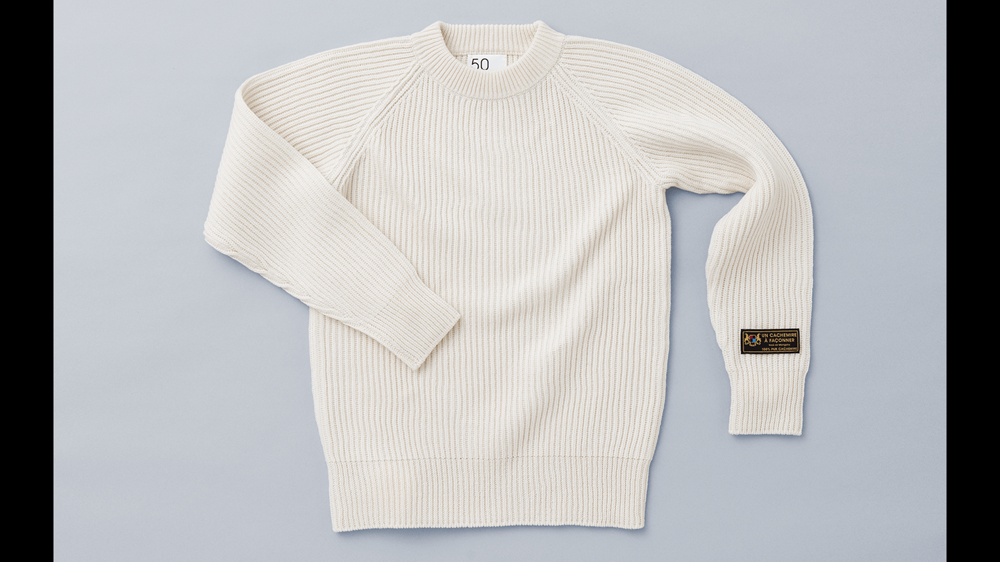 はるか遠いモンゴルの奥地にある「カシミアの聖地」。そこで採られた最高品質、100%オーガニックの原毛を、しっかり目のつまった、厚手のセーターに編み上げました。通常かならず行う仕上げの処理をしていないため、お手もとに届いたときが、いちばん硬い状態。着たり洗濯したりするうちに、だんだんカシミアらしく、やわらかくなっていくのを、たのしむことができます。着て、洗って、育てて、50年着られる。それが「育てるカシミア 50(サンカンタン)」です。まざりけのない、きれいなアイボリー色ですが、染色はもちろん、漂白などの処理もしていません。ヤギにもらったうぶ毛そのままの色です。