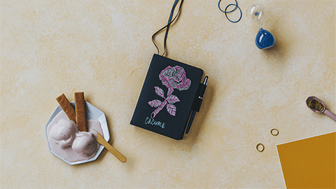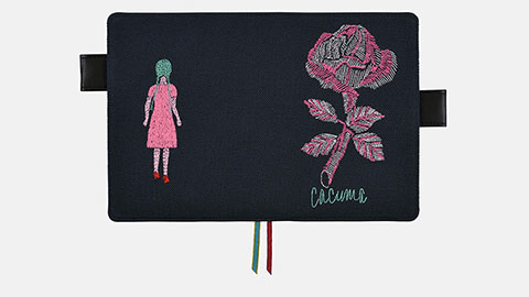 「キギ」の渡邉良重さんと「ほぼ日」がいっしょに作る洋服ブランド、「CACUMA」の手帳カバーが登場しました。良重さんが「自分で持つなら‥‥」と思い浮かべながらモチーフに選んだのは、凛と咲く1本のバラと、ワンピースを着た女の子の後ろ姿。手描きの原画をもとに、独特の色使いや繊細なタッチを刺繍で忠実に表現することにもこだわりました。上質でおしゃれな「CACUMA」の世界観をたっぷりと味わえます。