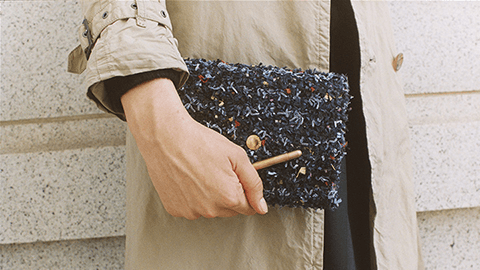 「FLORAL TWEED [Navy]」は落ち着きあるネイビーを基調に、レッドやイエロー、エメラルドグリーンなどの羽根が散りばめられ、大人っぽさの中にかわいさが見え隠れする、幅広い層に愛されるカラー。持ち歩くと、スパンコールがキラキラと品よくひかります。