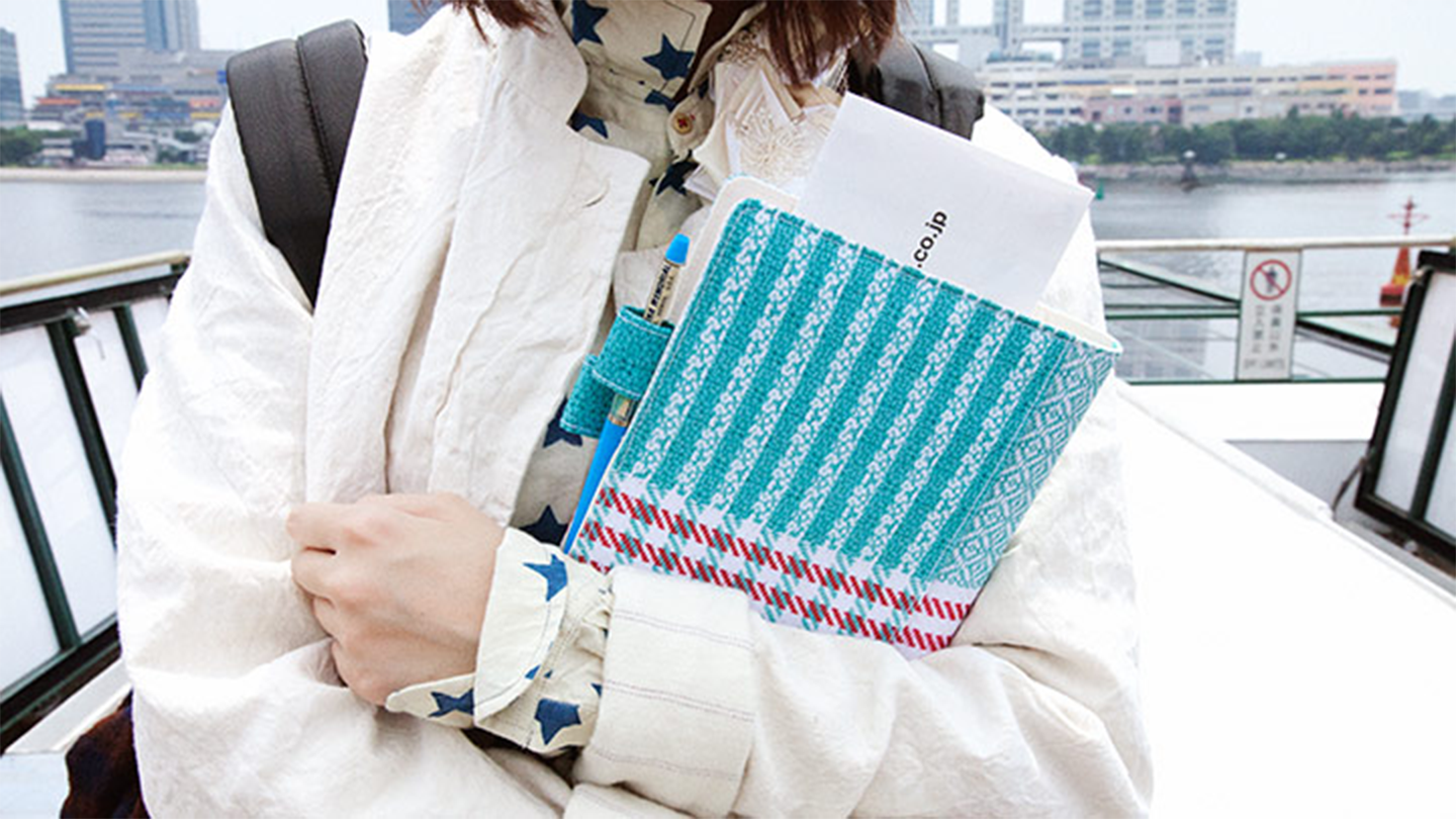 手織りのストールやバッグが人気のブランド、 trois temps(トロワトン)の生地をプリントで表現した手帳カバーです。
