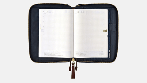 しおり(2本)/ペンホルダー(1つ)/カード用ポケット(4つ)/スマイルポケット(1つ)/小さなポケット(1つ)/大きなポケット(1つ)/メッシュポケット(1つ)/特大ポケット(1つ)/外側ポケット(1つ)