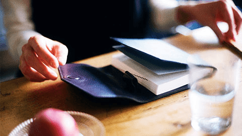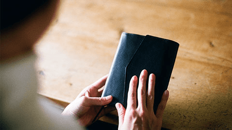 内側にも外側と同じ革を使ったぜいたくな仕様です。表側はマットなブラックを、内側には深みのあるネイビーを選び、大人の上品さを追求しました。持つ人や使うシーンを選ばない使い勝手のよさがうれしいカラー。色鮮やかなペンといった小物とのコーディネートも相性がよさそうです。