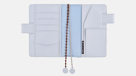 しおり(2本)/バタフライストッパー/カード用ポケット(4つ)/スマイルポケット(1つ)/大きなポケット(2つ)/チケットポケット(1つ)/外側ポケット(1つ)