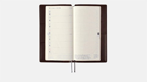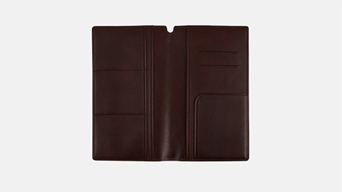 カードポケット(内左側に3つ、右側に2つ)/パスポートやチケットをはさめるコーナーポケット(1つ)/大きなポケット(1つ)/ペン挿し用のくぼみ(1つ)