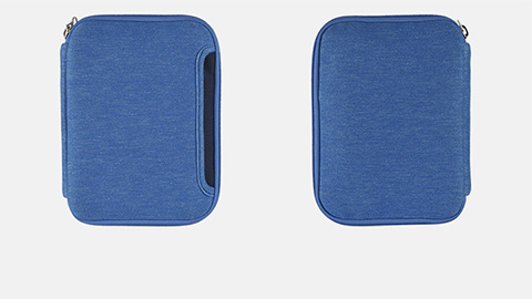 素材の「ネオプレン」は、ダイビング用のウエットスーツに使われる合成ゴムです。軽量でやわらかく、弾力性があり、立体的なシルエットが特長です。外側のポケットには「iPhone6 Plus」サイズのスマートフォンがすっぽり入ります。
