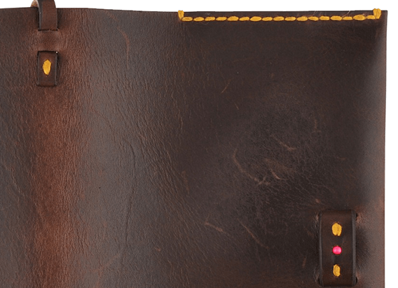 4色のなかでいちばんはっきりとした経年変化をたのしめる無着色のヌメ革、「NATURALE」。人の手に触れるたび、飴色が濃くなり艶が増していきます。ステッチは革の色に馴染むイエロー。刺繍は犬と木のモチーフです。