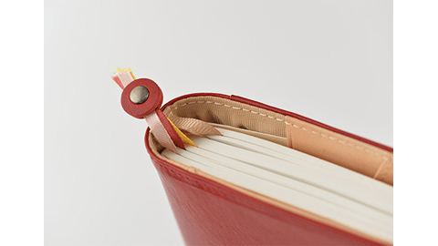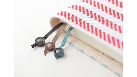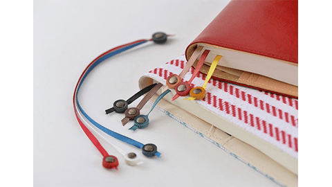 革製品ブランド「エムピウ」と作った手帳に3つのしおりを追加できる、リボン製のオリジナルブックマークです。3色のリボンがハトメによって1ケ所で留められていて、手帳にはさむと、自然に安定して使えます。かわいい形と色は手帳の見た目のアクセントにもなります。2種類の長さがあるので、お使いの手帳に合わせてお選びください。ことしは「トリコロール」の色味を落ち着きのあるものに変更しています。