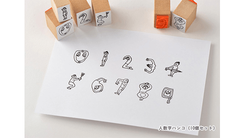 「人数字」は、男の子と女の子が0~9の数字のポーズをとっているかわいいハンコのセットです。イラストは、ほしのしほさん。ハンコの大きさは約2センチ四方で、手帳のページに押すのにもちょうどいいサイズです。