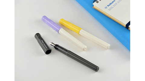 創業以来、95年にわたって日本の万年筆作りに携わってきた「PILOT」が作ったこども・初心者用の万年筆です。手頃な価格ながら、しっかりした作り。もともと、こども向けとして作られたものですが、ペン先には大人向けのステンレス製のものをそのまま採用しており、万年筆としての書き味は本格的。大人のかたにも実用的に使っていただけます。はじめて万年筆を使うこどもたちが「たのしく」「正しく」「気軽に」使えるよう全体の形状は、転がりにくい六角形。グリップ部分は三角形になっているためすっと正しい持ち方をすることができます。グッドデザイン賞、キッズデザイン賞を両方受賞した、人気の万年筆です。万年筆本体にはブラックの芯が1本ついてきますが、別売の替芯(5本入り)は、ブラックのほか、万年筆らしい色のブルーブラックもご用意しています。