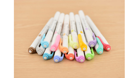 毎年人気の、やわらかい色合いの蛍光ペンのセットです。従来の蛍光ペンに比べて淡い色合いで目がチカチカしにくいのが特長。1本で太字と細字を使い分けられます。時間軸にそって方眼を塗りつぶしたり、大事なメモの部分を強調したりするのにお使いください。裏抜けもしにくく、「ほぼ日手帳」との相性は抜群です。