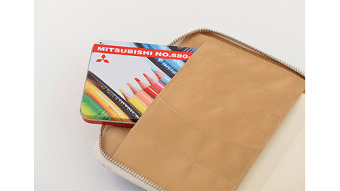 丈夫な缶のケースに入った、三菱鉛筆の定番色鉛筆12本セットです。コンパクトで軽いので手帳と一緒に持ち歩くのにもぴったり。ジッパーズにも入るサイズです。手帳をカラフルに彩りたい人や、1日ページにスケッチをしたい人、たくさんのスケジュールを見やすく色分けしたい人などにおすすめです。