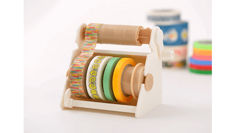 巻き取り方法は簡単で、本体に芯とテープをセットして、手でくるくるとレバーを回すだけ。複数のマスキングテープを同時にセットして、一気に巻き取ることも可能です。