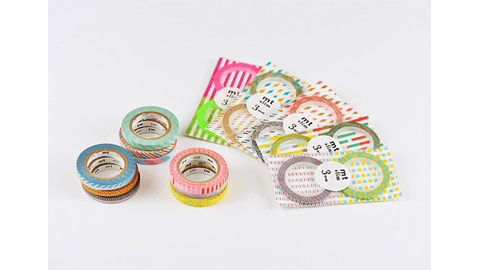 なにかと使い勝手のよいマスキングテープ「mtテープ」の携帯に便利なスリムタイプです。ことしは、水玉模様やストライプなど手帳を華やかにしてくれるかわいいものを数多く取り揃えました。