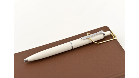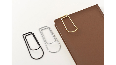 ペンホルダーになるクリップです。手帳の表紙やカバーに固定すると、クリップに引っ掛けるかたちでペンを1本持ち歩くことができます。色はゴールド、シルバー、ブラックの3色。クリップは、3ミリ程度の厚さまではさむことができます。WEEKSと一緒に使うのも、おすすめです。