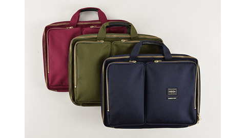 WEEKSといっしょに持てるPCケースとして、「WEEKS サンドウィッチ」とおそろいの3色が登場。カフェなどの外出先でも、ケースを開くだけで作業スペースを作り出せる自由さをイメージしました。11インチのノートPCはやや余裕を持ってしまえて、13インチなら、ぴったり収まる大きさです。内側の左右にはバンドがついているので、画面を開いてもケースは倒れません。クッション素材が、外部からのショックをやわらげます。A4サイズの書類も折らずに入るドキュメントポケットや、ペンやコード類など細かいものを収納するポケットが充実。資料だけでなく、作業に必要なツールも持ち歩けます。持ち手が短めでかさばらないので、バッグインバッグとしてもぜひお使いください。