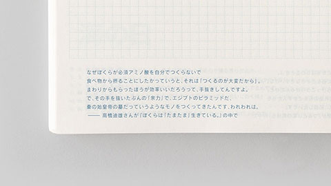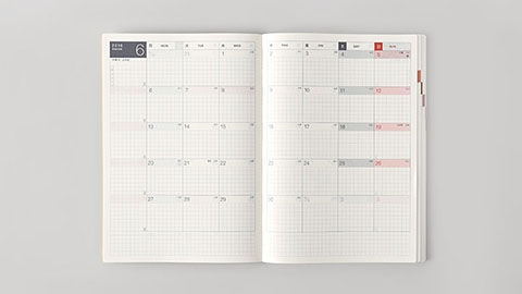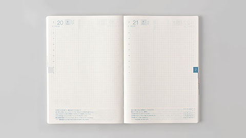 1日1ページ、A5サイズのカズンは文庫本サイズのオリジナルの約2倍の大きさ。「3.7ミリ方眼」や「24時間の時間軸」「日々の言葉」など、オリジナルの機能はそのままで、広いスペースにたっぷり書き込めるため、自宅や職場の置き手帳としてもぴったりです。