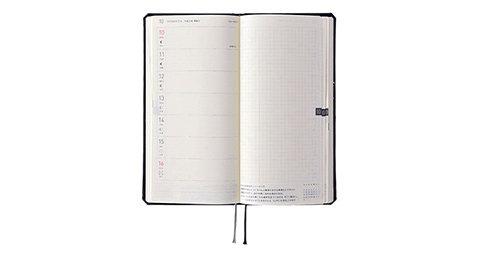 白いラインが象徴的な、WEEKSの定番シリーズ。ベーシックな黒の地色にまっすぐに入った白のラインが個性的な印象の1冊です。WEEKSの中で「ホワイトライン」のみが、やわらかい素材を使ったソフトカバーです。ページがめくりやすく、ぎゅっと握るように持ったりズボンのポケットに入れたりとラフに使えて携帯しやすいのが特長です。スマートな印象の「ブラック」は、WEEKSが登場した2011年版から毎年ナンバーワンの人気を誇ります。