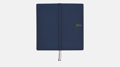 シンプルながら個性的な5色の「カラーズ」。ザラッとした手触りの表紙にはドイツの書籍装幀用の生地が使われていて、洋書のような雰囲気をかもし出しています。知的な印象のある「ネイビー」は、持つ人をスマートに見せてくれそうです。表紙の「2016」の文字には明るい黄色を使い、色の対比でネイビーの印象をより高めています。印象を変えてみたいときには「柄入りクリアカバー」との組み合わせもおすすめ。
