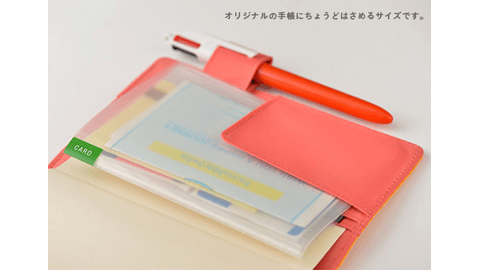 ほぼ日手帳オリジナルにはさむのにちょうどいいサイズの、名刺やショップカードなどをまとめておけるアルバムです。16個あるカードサイズのポケットにカードを背中あわせで2枚ずつ入れることで、最大32枚のカードが入ります。また、アルバムの前後に1つずつ(計2つ)大きなサイズのポケットがあり、規格の異なる大判のカードなどを入れておくことができます。