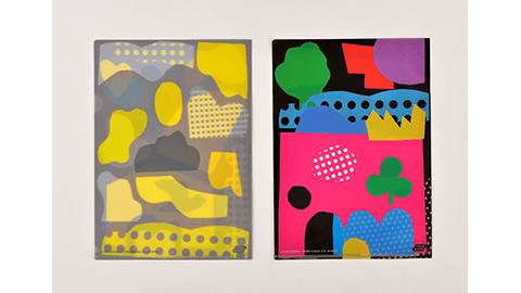 ほぼ日手帳カズンと同じA5サイズのクリアファイルのセットです。ことしのデザインは、イラストレーターの大塚いちおさんによるもの。いろんなかたちのイラストがたのしい2種類で、手帳に挟むと、端からのぞく姿もかわいいです。