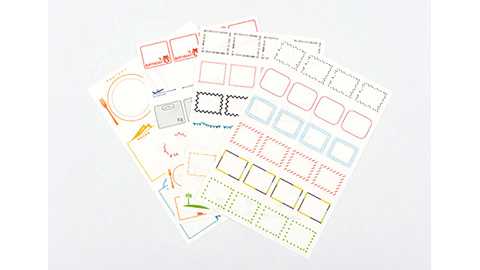 ほぼ日手帳オリジナルの「月間カレンダー」のページに合わせて作ったフレームタイプのシールです。さまざまな種類があり、マス目に合わせて貼るだけで手帳のページがにぎやかに、たのしくなります。上から文字を書くこともできます。また、「1日ページ」用の大きいサイズのシールも入っています。