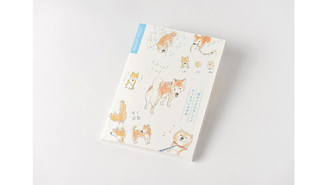 「雲がうまれる」さんの描いたかわいい柴犬のイラストが入ったミニ便せんです。手帳にはさむのにちょうどいい薄手のケースのなかに、「無地」と「罫線」の2種類が縦に並んで入っています。持っておくと、ちょっとメモを渡したいときや、手帳に何か書いてはさんでおきたいときなどなにかと便利にお使いいただけます。