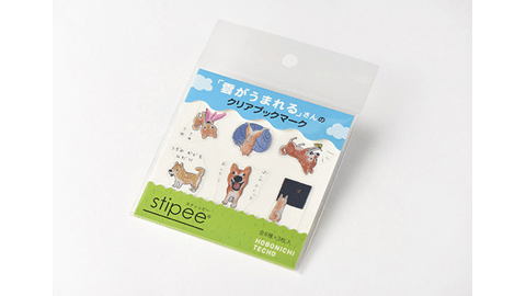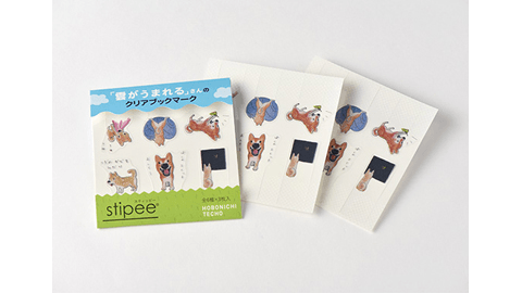 「雲がうまれる」さんといっしょに作った柴犬のイラストの透明なブックマークです。手帳の上に飛び出すように貼るプラスチックタイプのブックマークで、なんども貼ったりはがしたりして使えます。1つだけ貼っても、並べて貼っても、手帳のすてきなアクセントになります。全6種類が、各3枚ずつ入っています。