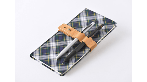 WEEKSが鞄の中などで開かないようにする、「HOBO」のマークがついたブックバンドです。伸び縮みするゴム素材のバンドで、バンドをとめる穴が2つ用意されているため、手帳の厚みが変わったときも安心です。(WEEKSの手帳単体との組み合わせはもちろん、クリアカバーやパスポートカバーをつけたWEEKSに装着して使うことも可能です)また、ペンさしがついていて、手帳と一緒に2本のペンを持ち歩くことができます。「ホワイト」「レッド」「イエロー」「ネイビー」「ローズ」「ヌメ」の6色からお選びいただけます。(「ヌメ」とは、使ううちに濃くなる革の色の経年変化をたのしめるカラーです)