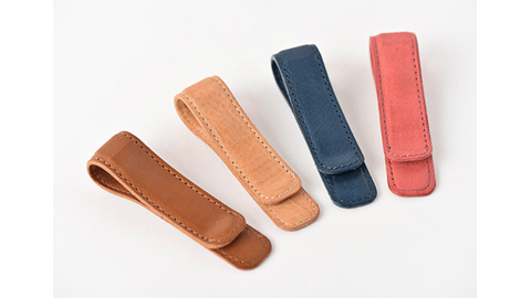 手帳の表紙に装着して使える、イタリア製のナチュラルレザーをつかったクリップです。ちょっとした書類や薄いノートを留めておいたり、カーブの部分に細いペンをさして持ち歩いたり、大切なページをさっと開くための「しおり」にしたりできます。WEEKSの横幅に合わせて作られているので、縦向きにも横向きにも装着が可能。また、オリジナルやカズンのカバーにはさんで使うのもおすすめです。「ネイビー」「ローズ」「キャメル」「ヌメ」の4色からお選びいただけます。(「ヌメ」とは、使ううちに濃くなる革の色の経年変化をたのしめるカラーです)