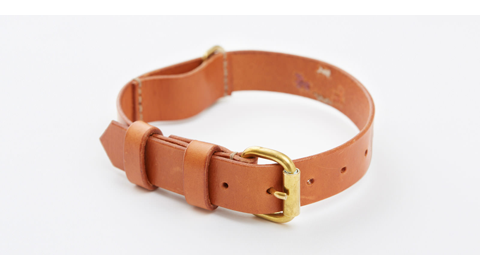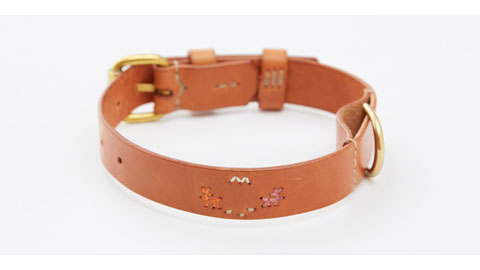 おおきめの中型犬から、大型犬用のサイズのくびわです。アンリさんのえらんだタンニンなめしの牛革を使い、Henry Cuir(アンリークイール)の特長である手刺繍で、アンリさんが別荘をもつエルバ島の海辺を仲良く遊ぶワンちゃんたちが描かれています。牛革のくびわのいいところは、使えば使うほど、いっしょに過ごした分だけ、経年変化をしていくこと。だんだんと色が濃くなっていく革の風合いや、もしかしたらついていくかもしれない傷などもふくめ、「いっしょに歩いた時間」としてたのしんでくださいね。なお、写真のモデルは首まわり34cm、体重は14kgです。