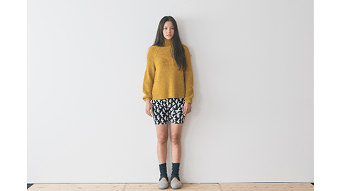 タートルニット¥33,600(フィルメランジェ/フィルメランジェ プレスルーム)ルームシューズ¥7,140(レイバー・アンド・ウエイト/ビショップ)ソックス スタイリスト私物